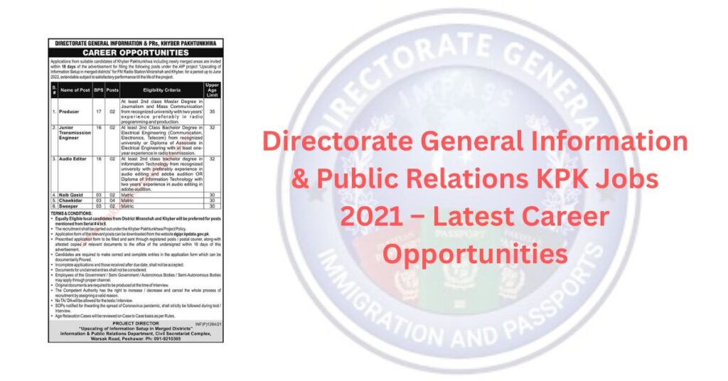 Directorate General Information & Public Relations KPK Jobs January 2026 – Latest Career Opportunities